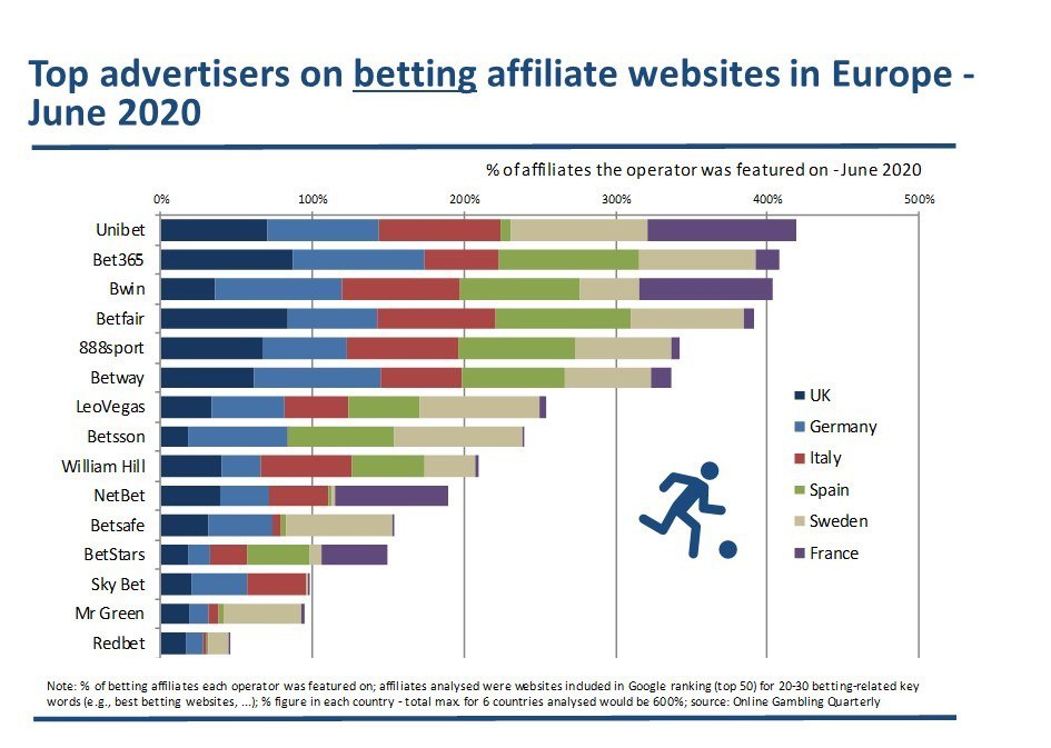 • Два крупнейших рекламодателя на аффилиат-сайтах в Европе – это bet365 и unibet;