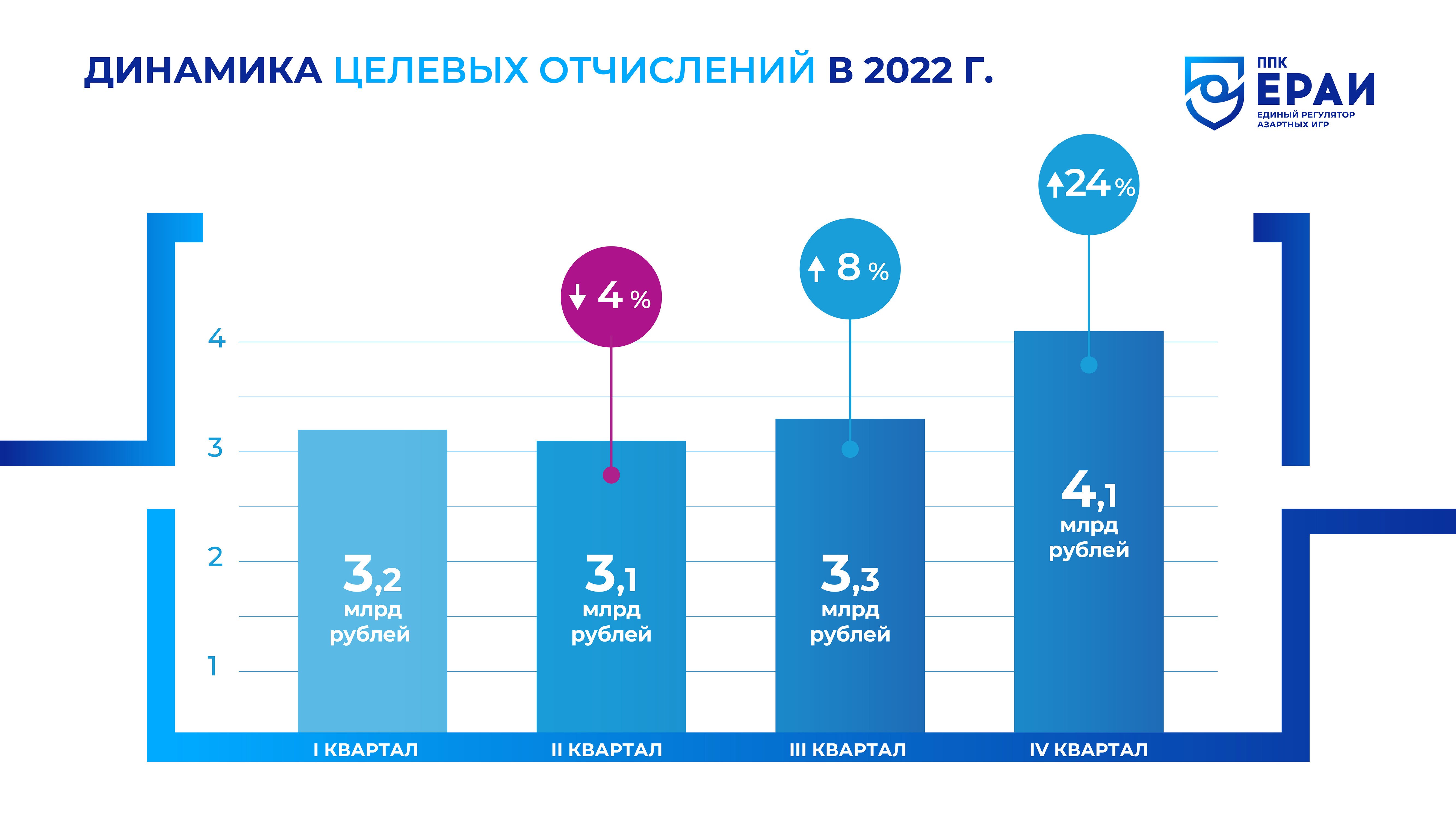 В 4-м квартале прошлого года ЕРАИ перечислил ЦО в объёме 4,1 миллиарда рублей. Это на 24% больше показателя за аналогичный период 2021 года.
