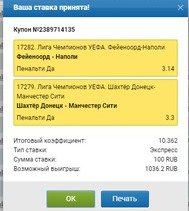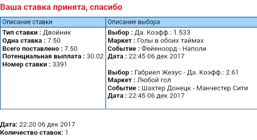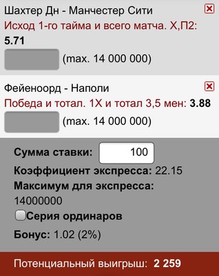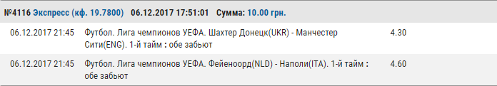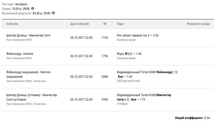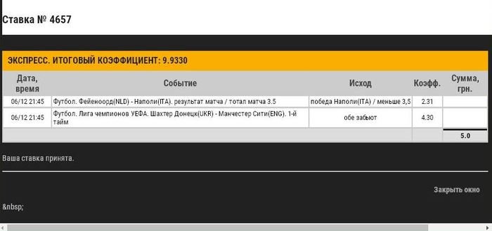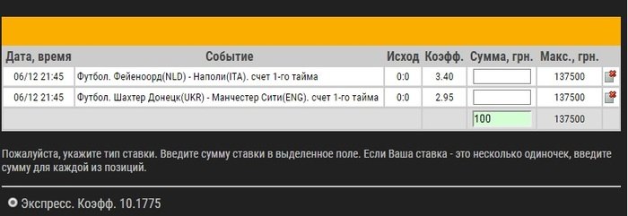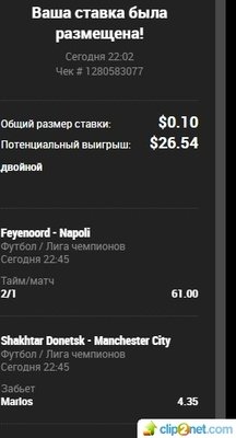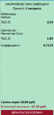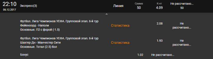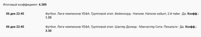 А вот моя ставка на матч «Фейеноорд» – «Наполи»: