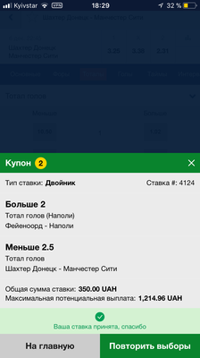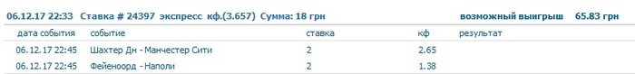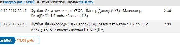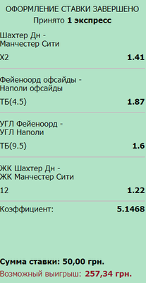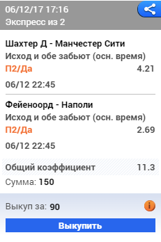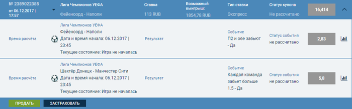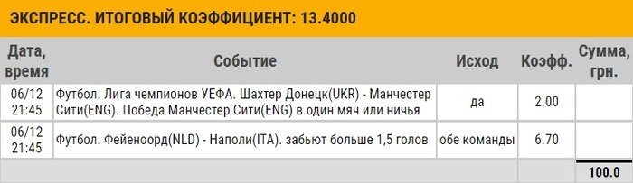 Розыгрыш в блоге. Подпишитесь на мой блог и оставьте в комментариях к этому посту скриншот своей реальной экспресс-ставки на два матча: «Фейеноорд» – «Наполи» и «Шахтёр» – «Манчестер Сити». Майку «Фейеноорда» от меня получит автор выигравшего экспресса с самым большим коэффициентом.