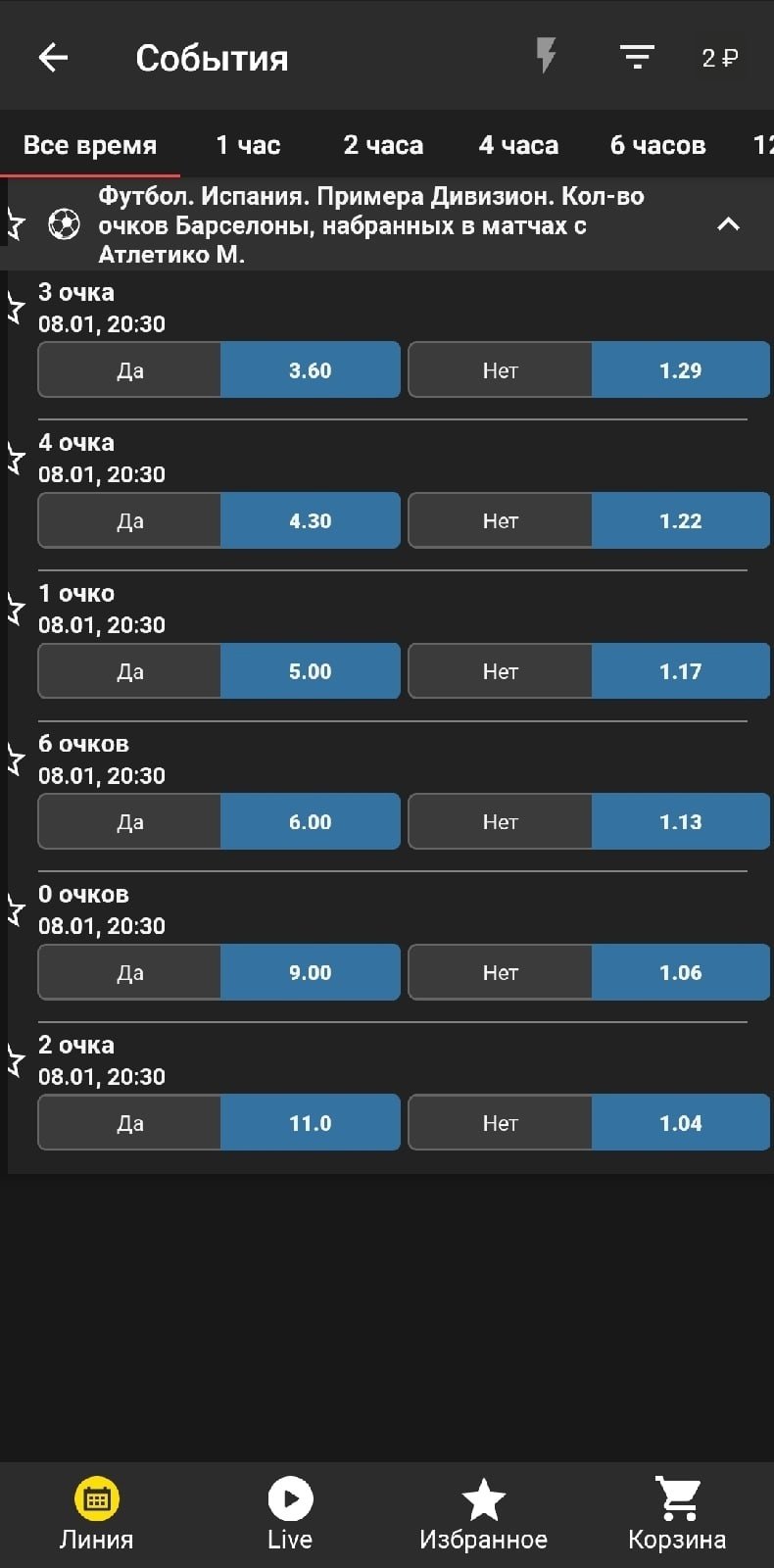 Из примера выше понятно, что долгосрочные ставки — это не всегда про длительное ожидание. Грузим на 6 очков «Барсы» в играх с «Атлетико», и расчёт ставки произойдёт уже в апреле, то есть спустя 4 месяца.