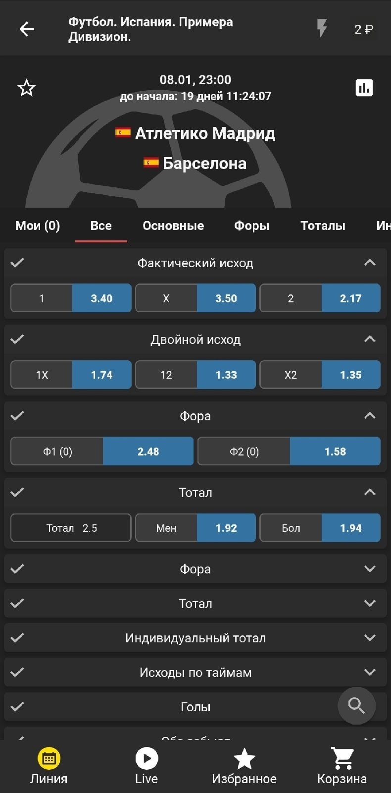 И это лишь один из кучи примеров. Взять хотя бы вышеупомянутые матчи «Барсы» и «Атлетико» — ну валуй же, а в линии висит уже не первый месяц.