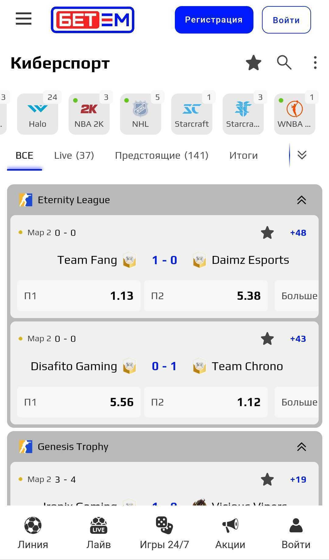 В линии представлено более 30 классических видов спорта, кибер выведен в отдельный раздел, в котором можно найти даже ставки на WNBA 2K. Есть раздел статистики, фильтры по времени и калькулятор расчёта систем.
