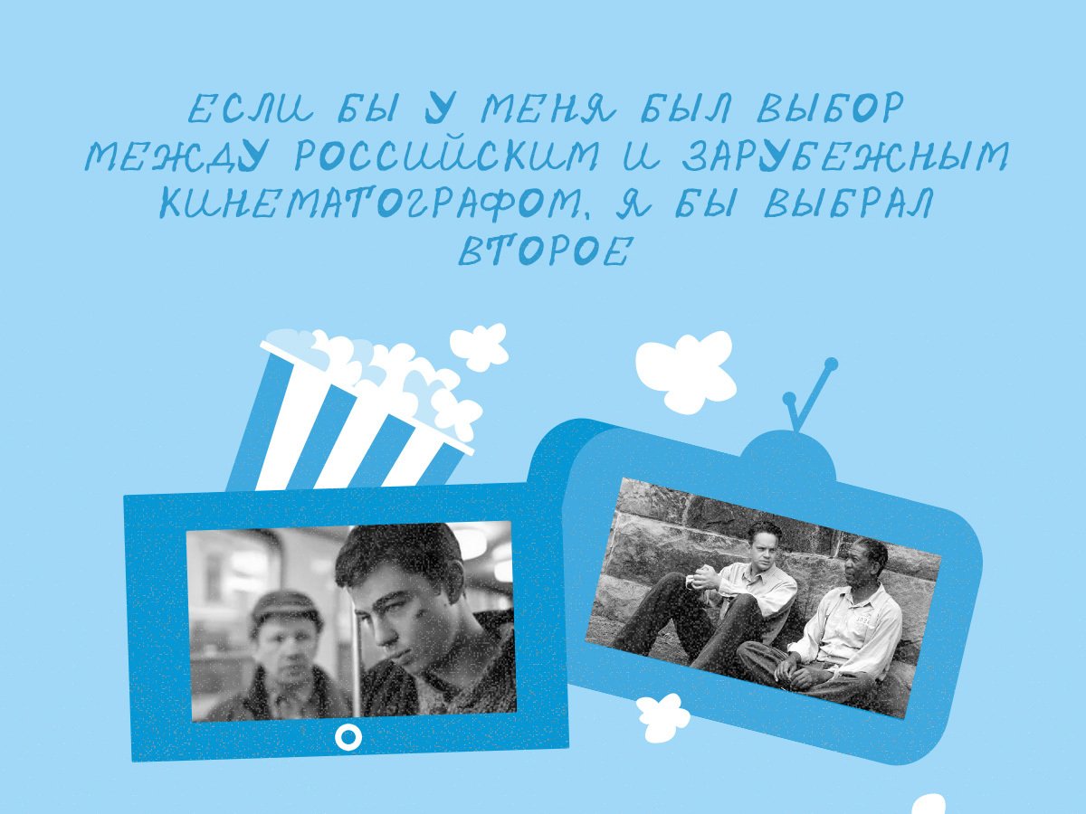 — Не скажу, что стрём: есть очень крутые фильмы, которые бы я пересматривал. Но если бы у меня был выбор между российским и зарубежным кинематографом, я бы выбрал второе.