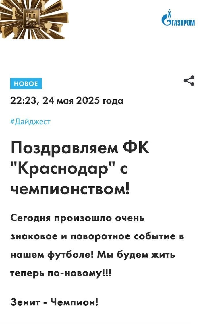 Упущенный титул «Зенит» наверняка вернёт домой уже через год, и очко отставания от «Краснодара» забудут. А 100-летие над вольной Невой запомнят навсегда. И встретил его город с чемпионским размахом, несмотря ни на что.