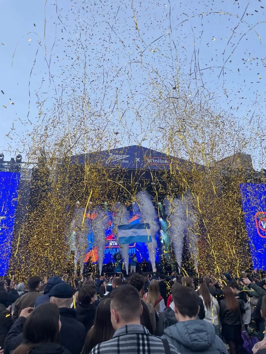 Кульминация — уже на улице, где болельщики и футболисты объединились в одно целое. Глушенков танцевал в парике, Мостовой купался в овациях.