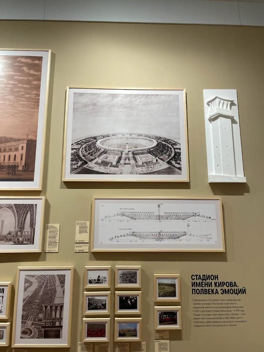 Отдельный зал выставки посвящён домашним аренам. Почему-то останавливаюсь у проекта стадиона имени Кирова, который снесли в 2006-м. Он сильно напоминает что-то южное, что-то с парком, что-то похожее на Колизей. Стоп, да это же арена «Краснодара», только в чёрно-белых цветах. А может, всё дело в развязке РПЛ и мозг даже в таких ассоциациях стремится к южному матчу? Согласитесь, есть в этом некоторый символизм.