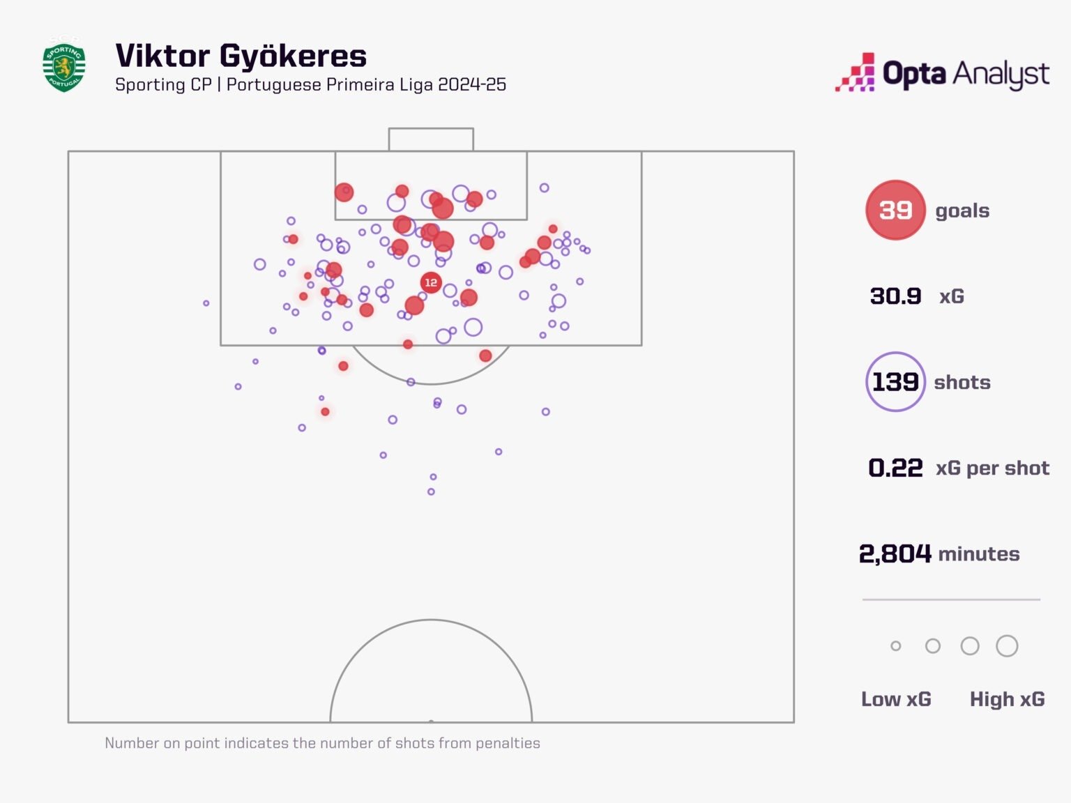 Да и в целом по уровню таланта швед в другой лиге. Дьёкереш забил гораздо больше, чем кто-либо, кто неудачно заезжал в топ-чемпионат из Португалии: Тареми, Карлос Винисиус, Джексон Мартинес или тот же Нуньес. Виктор ближе к Левандовски, Суаресу, Роналду и Месси — только они оформляли 39+ голов в топ-10 европейских чемпионатах за последние 20 лет. Не забываем, что Дьёкереш пробовался и в Лиге чемпионов. В 8 матчах он выжал 6 голов из 4,6 xG и нокаутировал хет-триком «Манчестер Сити» (4:1).