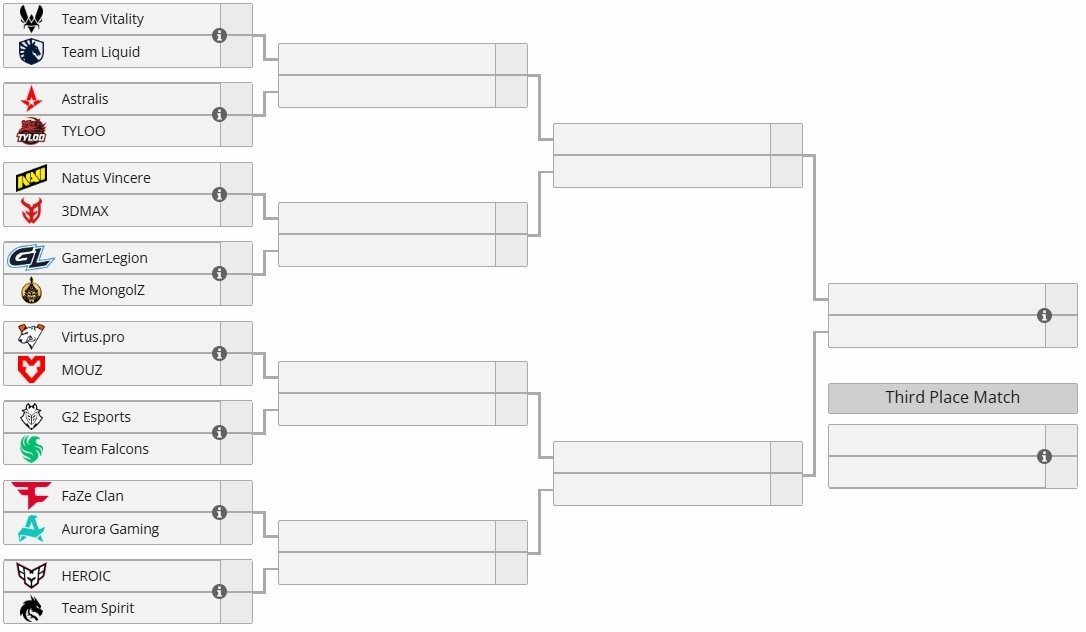 Все 16 составов разбиваются по парам согласно рейтингу Valve — восемь фаворитов против восьми аутсайдеров;