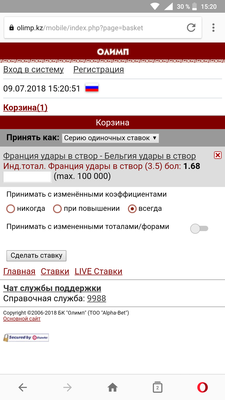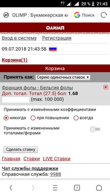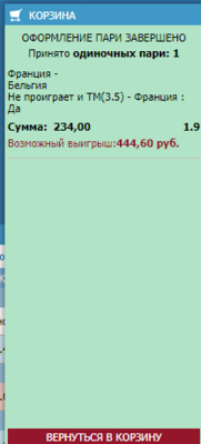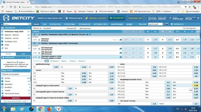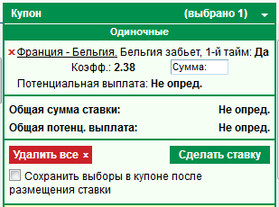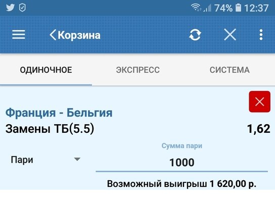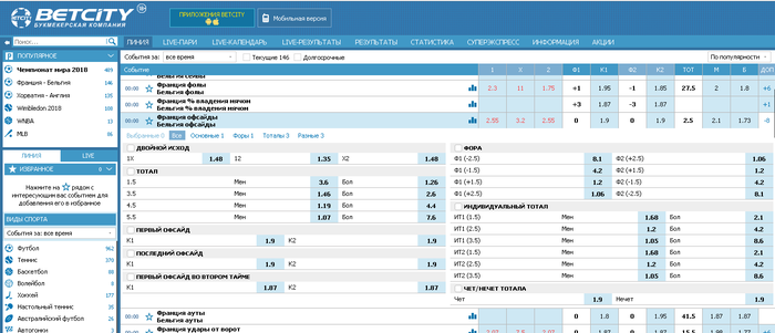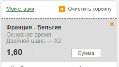 Франция - Бельгия Офсайды Франция ТМен 1.5 кэф 1.68 Betcity