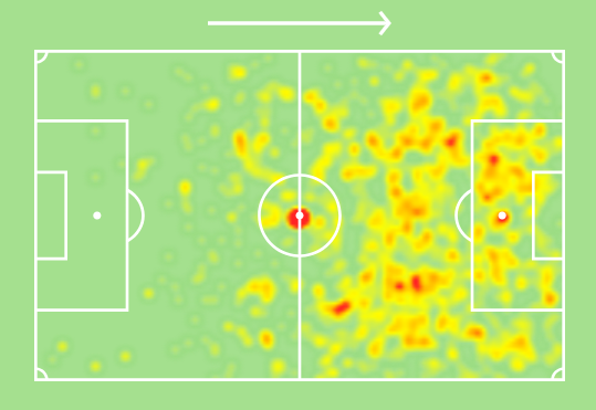 Виссам — игрок момента, поэтому вы не увидите его в постоянном движении с мячом, он привык бить из тени, моментально включаться в эпизод и потом растворяться на поле, словно его и нет. У него всего 27,7 касания за матч, а тепловая карта холодна как жена после ссоры.