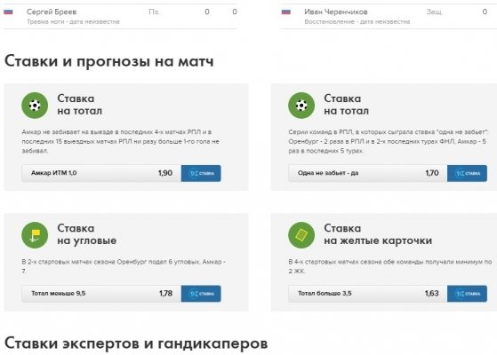 а ставки внизу каждого матча...как пример прошедший матч в Оренбурге