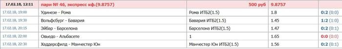 30 мин. - есть у кого-либо сформированные мнения по этим матчам?!