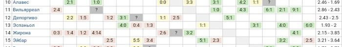 Если убрать соперников берущих инициативу на себя то имеем домшние +2 / -1 (Сельта 1:3, Депортиво 5:2, Малага 3:1) плюс в гостях +3 / -2 (к слову). Алавес , может и не так актуально , но имеет в гостях пока с середняками +2 / =2 / -2 .