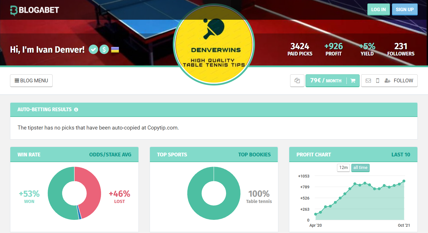 Очень весомое преимущество Blogаbet — возможность верификации ставок по «комовской» версии БК bet365, где максимально крутая линия. Поэтому можно давать подтверждённые прогнозы на настольный теннис, гольф, дартс и другие не слишком популярные виды спорта. Да, на Bet-Hub тоже можно, но вписывать придётся вручную, а это ценится гораздо ниже, чем 100% верификация — ручному вводу некоторые покупатели просто не верят.