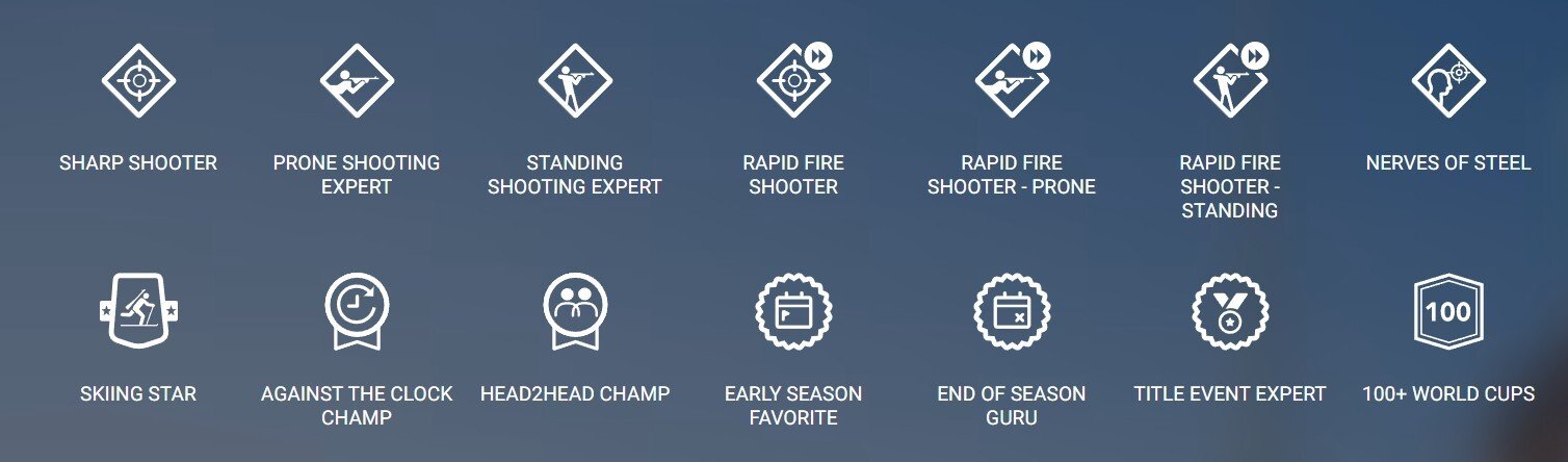 Помимо этого, сплиты по результатам в стрельбе вы найдёте на официальном сайте IBU внешняя ссылкаВнешние ссылки запрещены. Там есть «нашивки», которые вручают, оценивая десяток разных показателей: меткость стрельбы стоя и лёжа, скорость стрельбы, скорость бега, точность последнего выстрела и т.д.