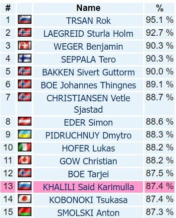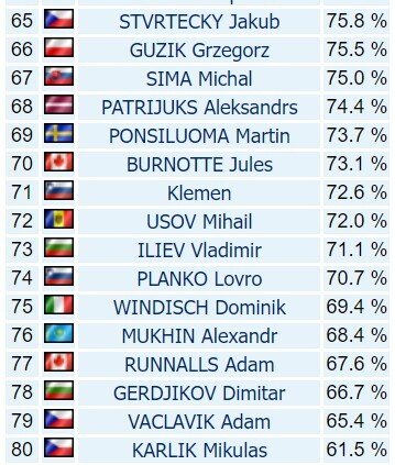 Йоханнес Бё — 4.54 Стурла Легрейд — 5.00 Кентен Фийон Майе — 5.10 |