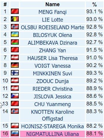 Эльвира Эберг — 4.84 Марте Олсбю — 4.84 Тириль Экхофф — 15.00 |
