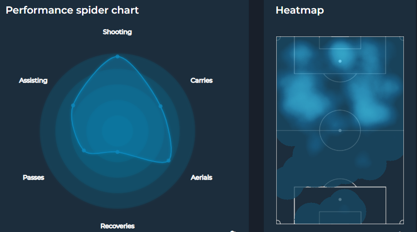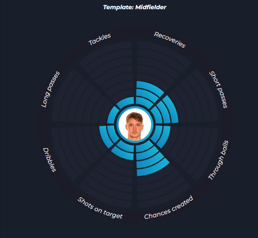 Совершает 38,2 касания в среднем за игру и выдаёт 1,8 ключевого паса за игру. При этом постоянно поддерживает атаку 2-м темпом, а иногда и сам устремляется на острие.
