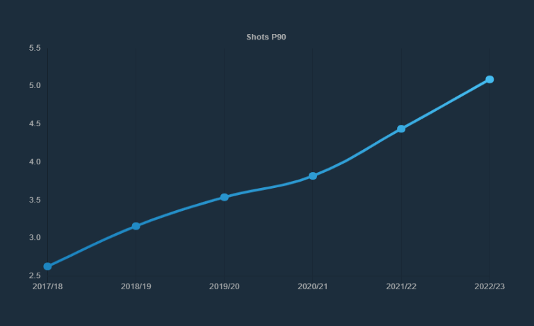 Выжигает правый фланг, постоянно обостряет и наносит в среднем 1,3 удара по воротам по сезону.
