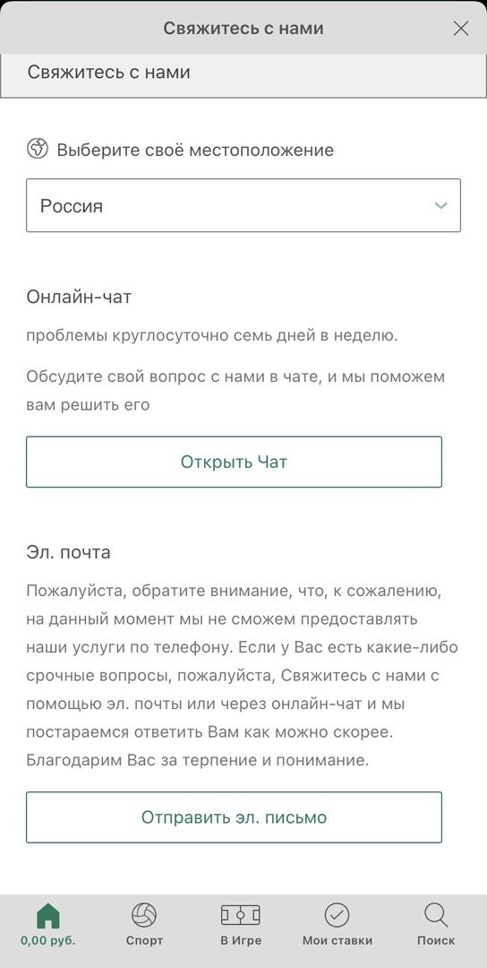 Также из ЛК можно связаться со службой поддержки. Правда, сперва попросят ознакомиться с самыми популярными вопросами, а только потом свяжут с оператором в онлайн-чате или предложат отправить электронное письмо.