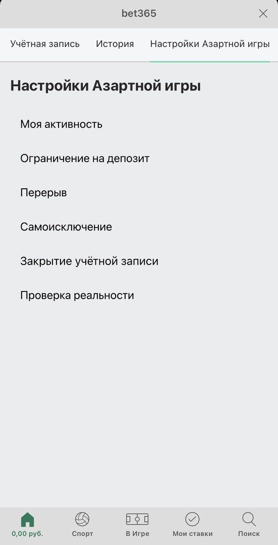 Очень важный плюс букмекера, реализованный и в мобильном приложении, — возможность установить самоограничения, кликнув на «Настройки Азартной игры».