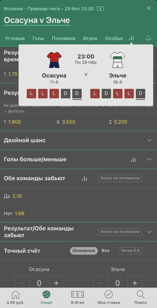 При выборе отдельного события в статистике отображены лишь результаты пяти последних матчей (без счётов) и место в турнирной таблице — согласитесь, это самый-самый минимум, который большинству игроков и так известен, поэтому уровень полезности стремится к нулю.