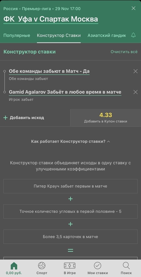 Удобно, что можно выбрать несколько событий, затем для каждого по отдельности подставить сумму — и поставить всё ординарами. В некоторых БК ординары приходится ставить по очереди, что занимает гораздо больше времени.