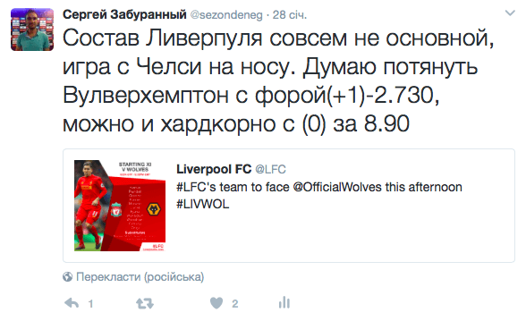 Мотеруэлл - Рейнджерс 28.01.2017 | 15:30 Тотал 2.5 Б 1,69