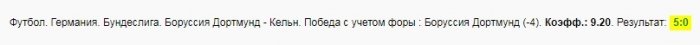 Исходя их этого, выделяем на один день больше отдыха и домашний матч для Боруссии, плюс вымотанный Кёльн который провёл сложный матч против Арсенала, поэтому допускаю, что игроков Кёльна которые не привыкли играть в подобном режиме, наверняка не хватит на весь матч в Дортмунде.