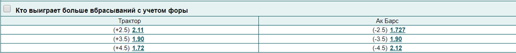 Букмекеры дают слабую линию на вбрасывания в КХЛ