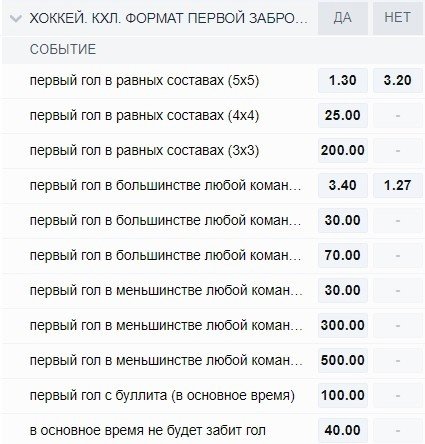 А вот насчёт КХЛ «Фонбет» немного подзапарился: расписали широчайшую линию, в которой есть очень узкие смоллы (например, формат первой заброшенной шайбы и причина первого удаления).