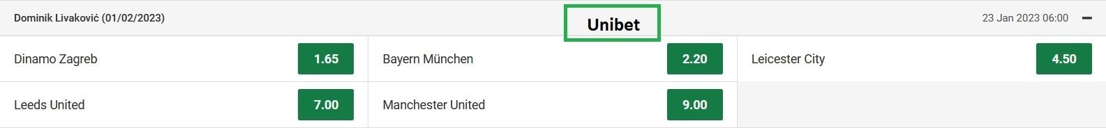 Букмекеры расходятся в оценке шансов: в Unibet дают больше 40% на то, что хорват зимой окажется в «Баварии», а в Paddy Power — около 22%. В чём причина расхождений? В отсутствии официальных заявлений от клубов — в СМИ лишь прошла новость об интересе мюнхенцев, а представители голкипера заявили, что Доминик готов к переходу.