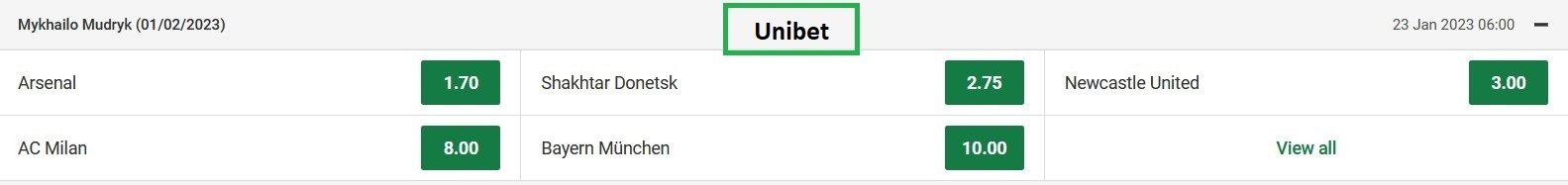 Британские конторы Unibet и Paddy Power дают больше 60% вероятности на то, что Михаил до конца января переберётся в Лондон: первое предложение «Арсенал» уже сделал, но 40+20 миллионов евро показались «Шахтёру» неубедительными.