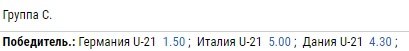допустим Италия побеждает немцев 2-0. Чехия Данию 3-0.