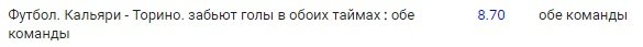 Кальяри - Торино. Тотал Больше 2.5 кф.1.53