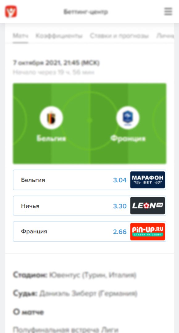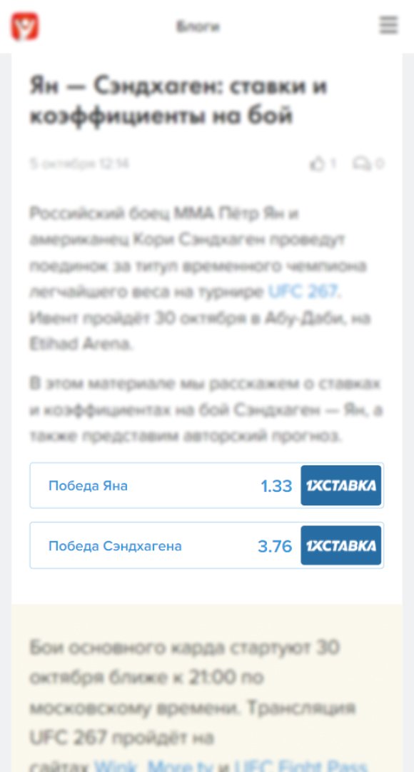 Ниже по тексту в таких публикациях размещаются плашки с коэффициентами только от партнёров, но уже без привязки к топ-3.