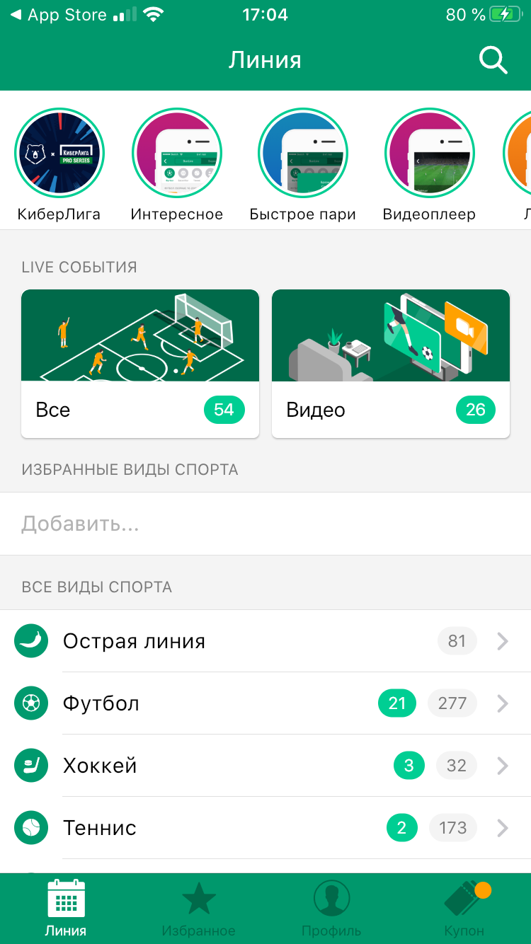 Игрок получил доступ ко всем разделам без необходимости переходить на новые подгружающиеся вкладки. Важным нововведением также стал раздел «Видео», в котором отдельно собраны все лайв-линии с онлайн-трансляциями.