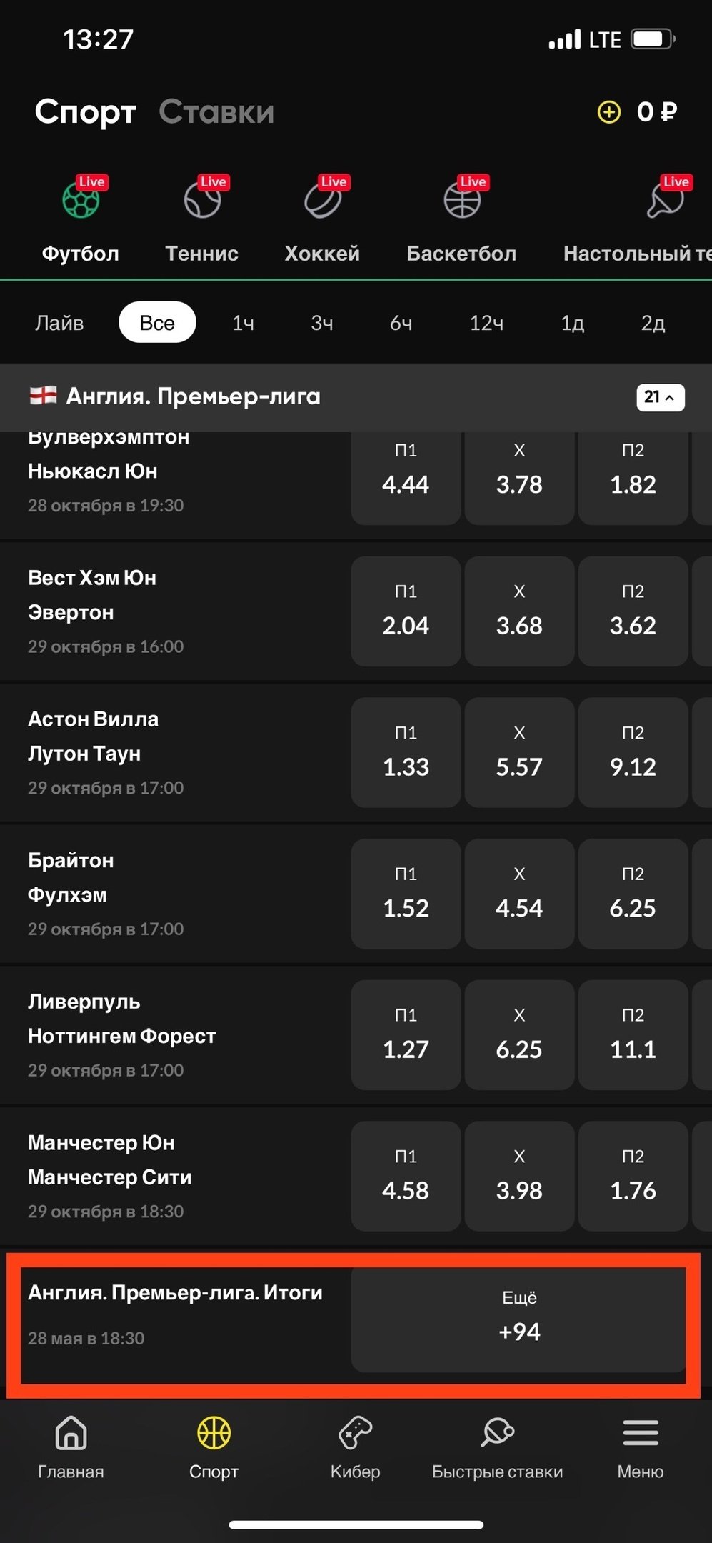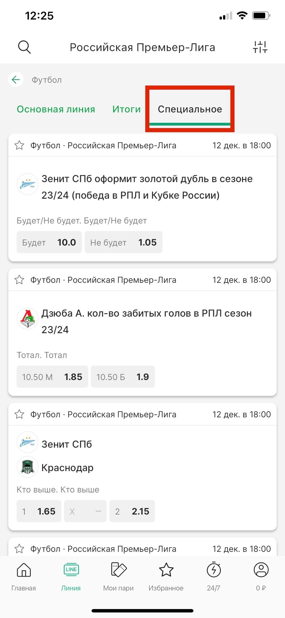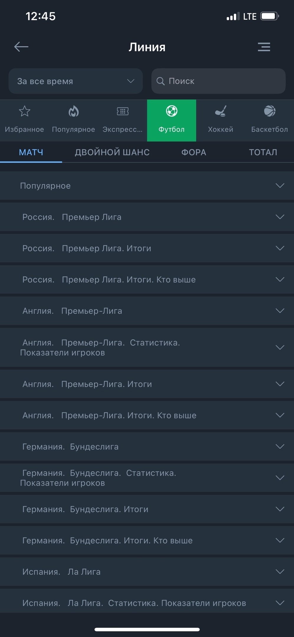 Линия у букмекера тоже абсолютно стандартная. Похвастаться интересными ставками могут разве что РПЛ, АПЛ и Лига чемпионов. Можно найти тоталы команд, отдельных игроков и несколько вариаций «Кто выше» для ЛЧ. Все остальные турниры максимум предлагают линию на лучшего бомбардира, а в НБА и НХЛ вообще есть только итоги.