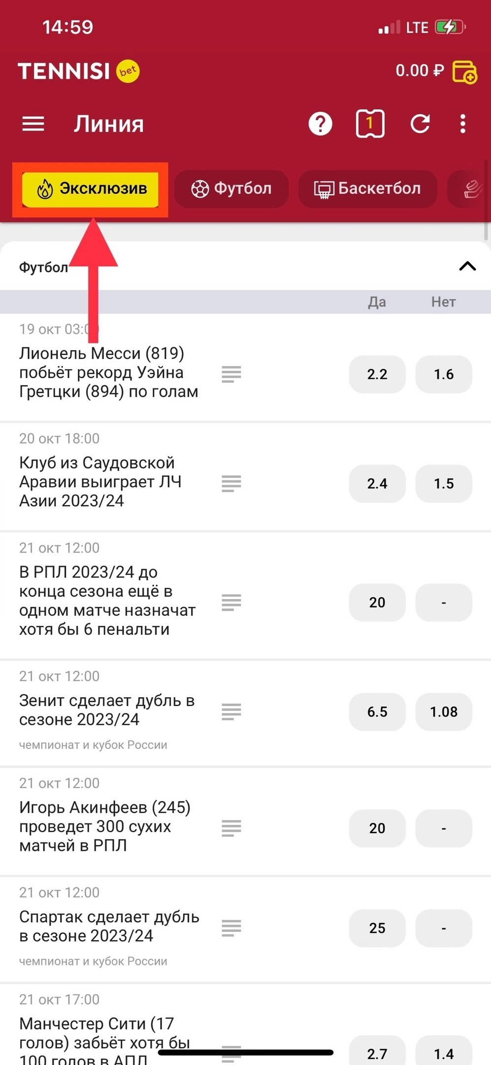 Количество рынков меняется в зависимости от того, когда следующий игровой тур, но в целом Tennisi даёт все стандартные рынки на победителя и лучшего бомбардира. Но главная фишка даже не в них, а в эксклюзивах.