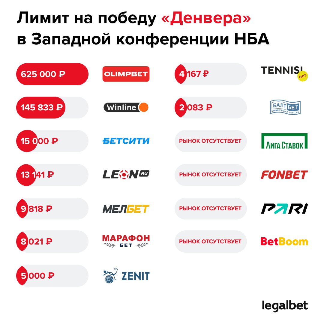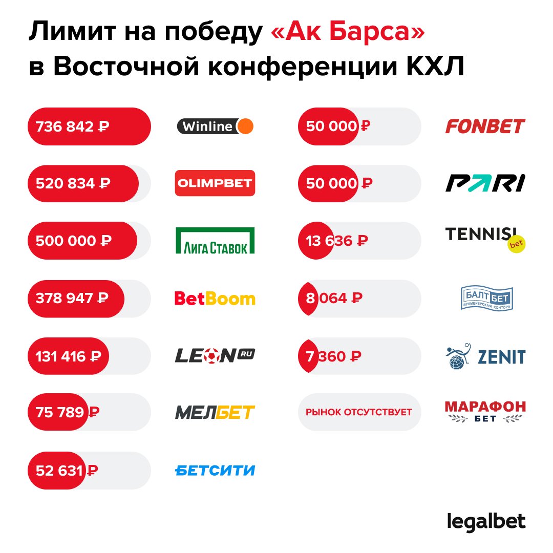 Стабильно в топ-3 по лимитам Winline, Olimpbet и «Лига Ставок» — главное, чтобы нужная ставка была в их росписи. Но если есть, то поставить чаще всего дадут больше, чем многие другие.
