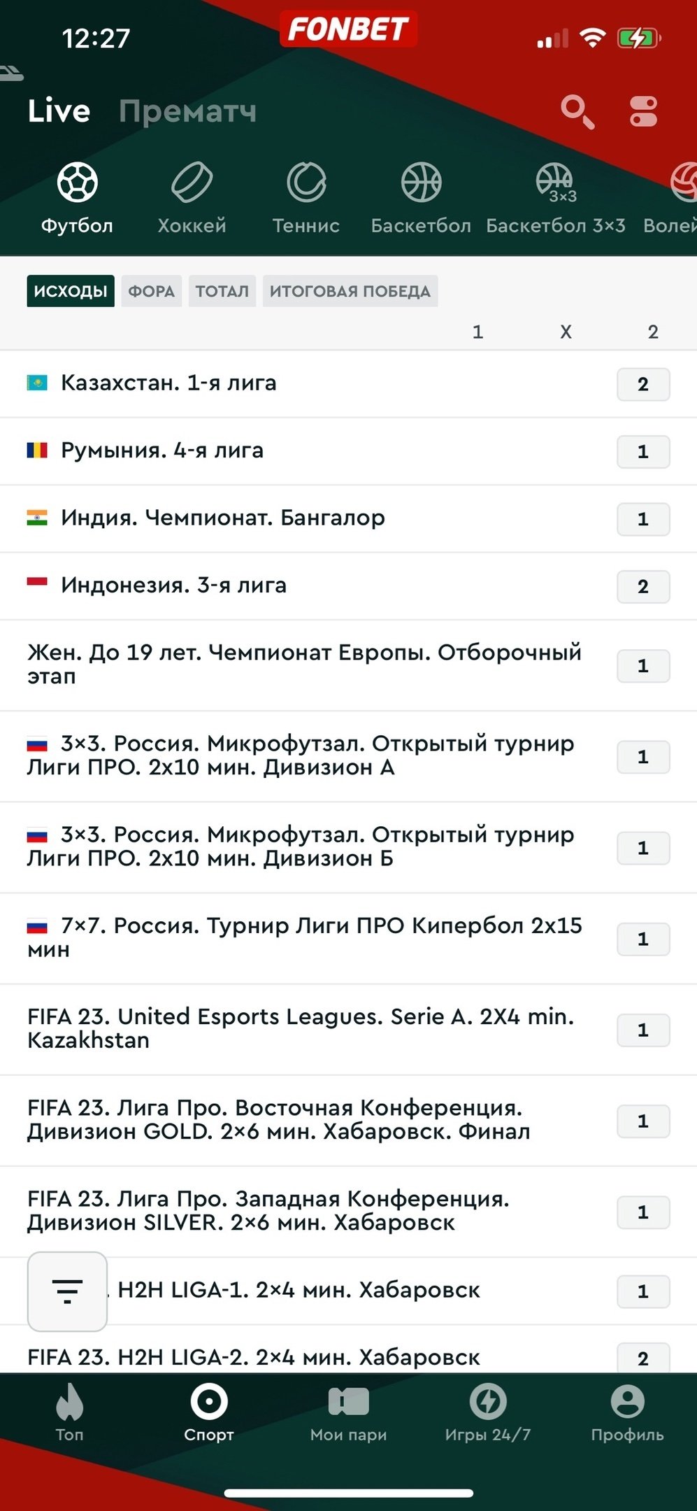 Как и в Winline, здесь можно поставить на игрока года по версии PFA в Англии. На топ-турниры есть и ставки на самую забивающую команду, на тех, кто пройдёт дальше (если это кубковое соревнование). В баскетболе огромный список пари на статистику игроков, но каких-то фановых вариантов у букмекера нет.