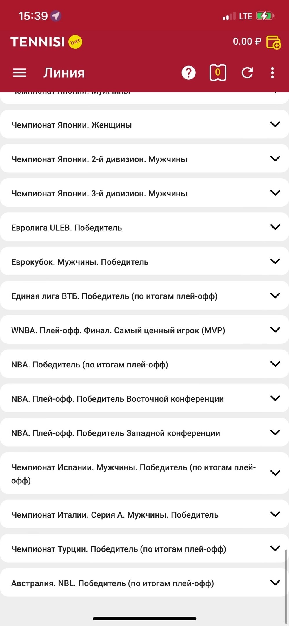Этот букмекер предлагает больше 200 долгосрочных маркетов на футбол, 150 на баскетбол и около 80 на хоккей. Найти всё это добро можно в самом низу вкладки с видом спорта. Вот как это выглядит на примере баскетбола: