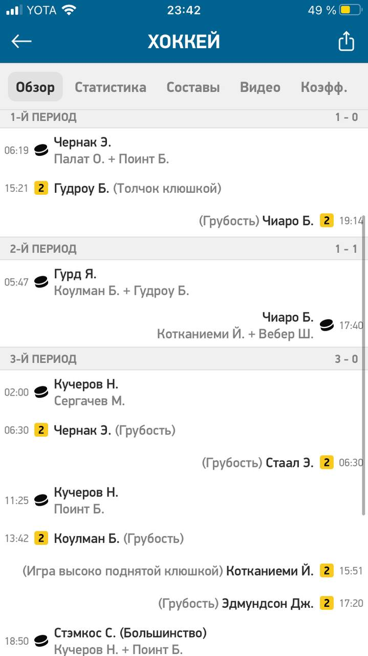 Здесь, кстати, заодно можно убедиться лишний раз в закономерности про фолы при разгромном счёте, о которой рассказывал выше. Как видим выше, при 3:0 соперники нарушили правила только три раза.