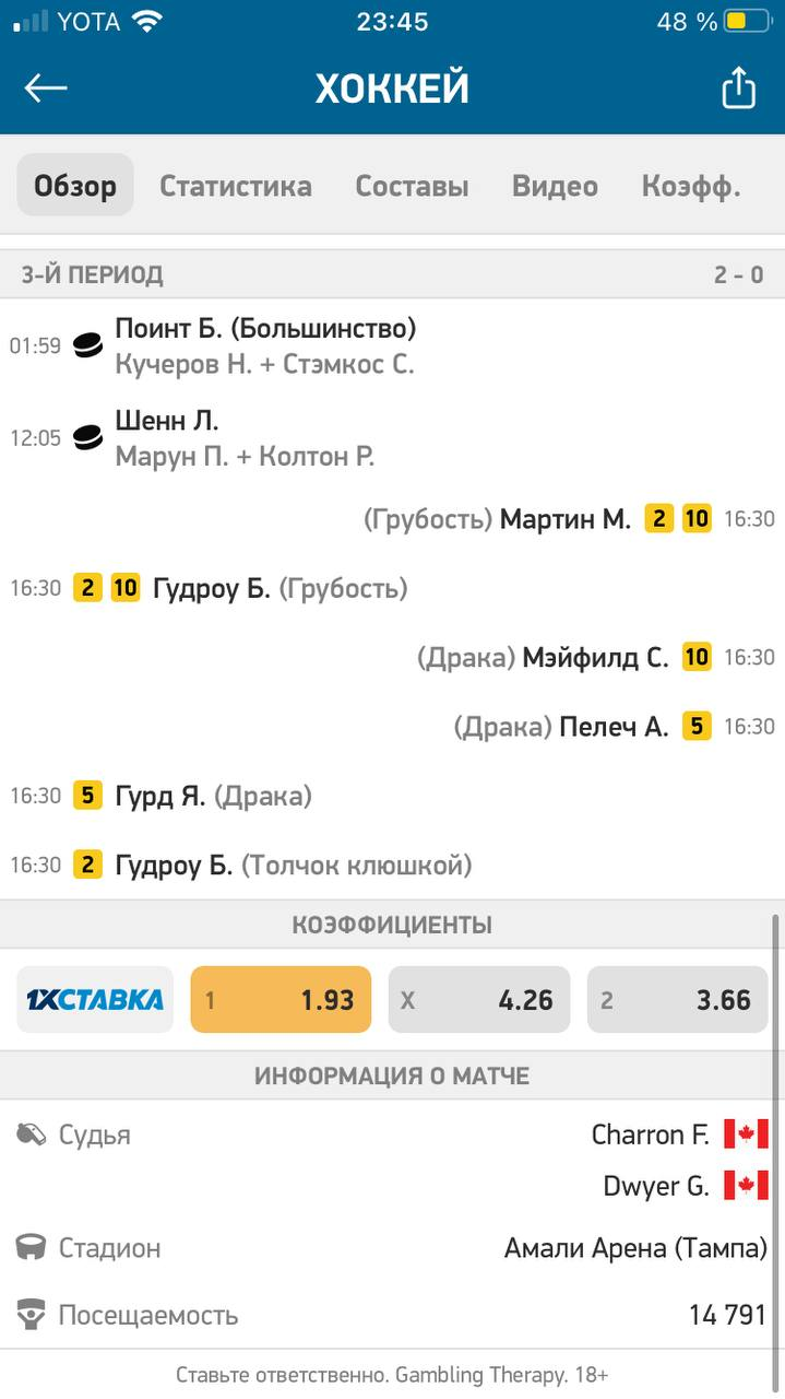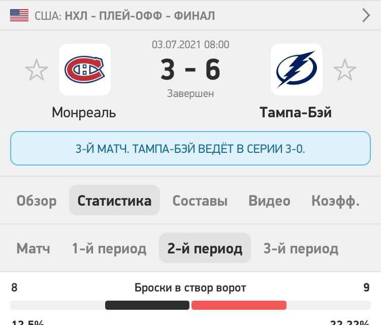 Относительно свежий пример — опять же НХЛ, третий матч финала между «Тампой» и «Монреалем». В первом периоде соперники нанесли на двоих аж 29 бросков, и БК выкатили на второй увеличенный тотал 23,5. Результат — только 17 попаданий в створ.
