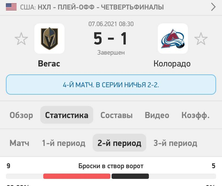 Также вспоминается четвёртый матч полуфинала Запада «Вегас» — «Колорадо». В первом периоде было 24 броска, букмекеры на второй отрезок опять же выкатили 23,5, а команды бросили всего лишь 14 раз.
