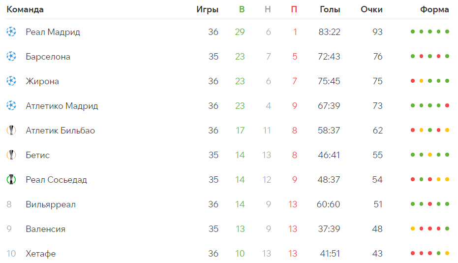 Теоретические шансы попасть в еврокубки остаются и у «Вильярреала», но для этого команде также нужно выигрывать обе встречи, так ещё и ждать ошибку «Бетиса». Догнать «Сосьедад» уже вряд ли получится, слишком уж хорошая у команды разница мячей (у «Вильярреала» сейчас 0). Получается, за 2 слота в еврокубки борются 3 клуба, но у «жёлтой субмарины» шансов явно меньше всех. Тем более что следующий матч против «Реала», домашняя победа в котором идёт за