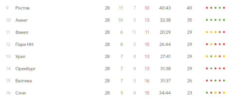 За подвалом РПЛ следить будет едва ли не интереснее, чем за чемпионской гонкой. Сразу у 4 клубов по 29 очков, и даже у «Сочи» всё ещё остаются микроскопические шансы на спасение. А особенного шарма этой ситуации придаёт то, что вылетающая к 28-му туру «Балтика» добралась до финала Кубка России — если бы не отстранение клубов от еврокубков, могли бы увидеть в ЛЕ команду из пердива. Хотя и хоронить калининградцев тоже рано — шансы выжить ещё есть у всех.