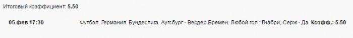 Хоффенхайм - Вердер 1:1 | 90 | 2/1 | 1 |