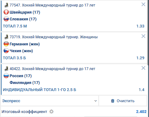 В Южной Корее где победителя турнира выявят в очной встрече Латвия и Казахстан,состоится встреча аутсайдеров,так хозяева турнира сыграют со сборной Японии.Корейцы как хозяева идут фаворитом этой встречи,но японцы в отличии от хозяев в матчах с фаворитами играли более успешно и как минимум забрасывали две и больше в каждой встрече.На больших турнирах в личных встречах команд с не очень широкими глазами японцы имеют преимущество.Изначально хотел брать ИТБ 1.5 Японии.но пока суть да дело кэф упал до 1.57.разве что взять в экспресс.Решил тут рискнуть и взять так: